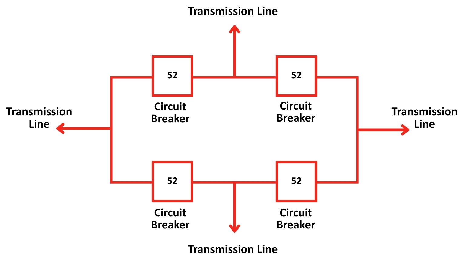 In a substation or switchyard with a ring bus design, the number of breakers matches the number of lines. Power can flow through the ring, creating redundancy and flexibility. If a section of the ring needs to be isolated, power can still flow through the remaining segments, minimizing outages and maintaining station operation.