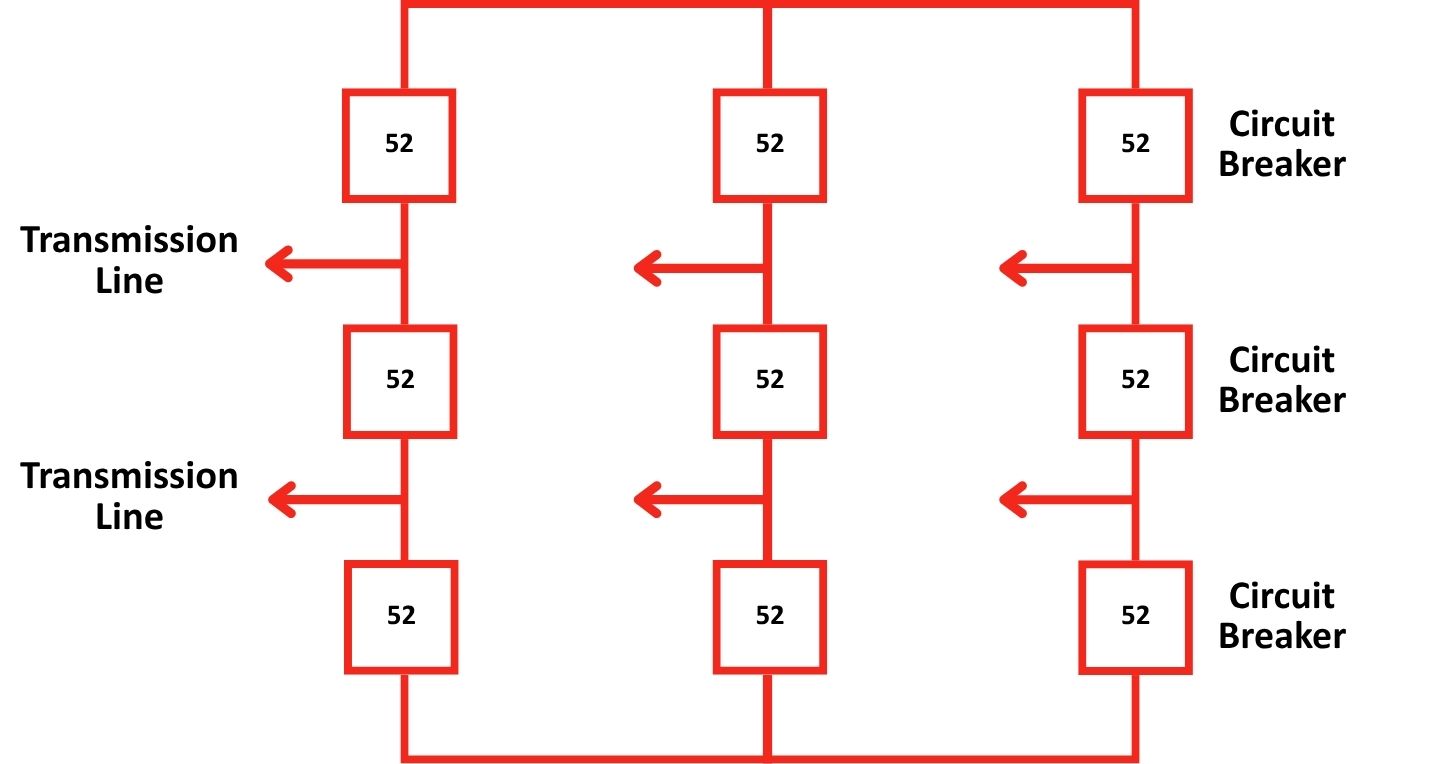 In addition to radial, ring, and breaker-and-a-half bus schemes, a fourth design option exists: the double-breaker bus arrangement. In a double-breaker bus scheme, each circuit has two breakers dedicated to it, unlike the breaker-and-a-half scheme, where each line has a dedicated breaker and a shared breaker. Double-breaker bus arrangements are extremely rare due to the increased expense of the additional breakers and relaying equipment. For most utilities, the operational benefits don’t outweigh the increased cost and complexity of a double-breaker bus option.