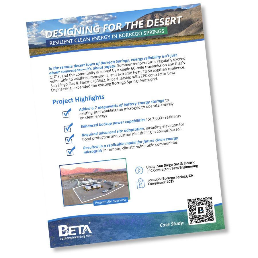 Beta Engineering led discussions on how utilities and suppliers can build sustainable infrastructure—even in harsh environments. Senior Project Manager Gerald Da Silva, PE, presented the case study “Designing for the Desert: Resilient Clean Energy in Borrego Springs,” highlighting the expansion of the Borrego Springs Microgrid, the first utility-owned, community-scale microgrid in the U.S.